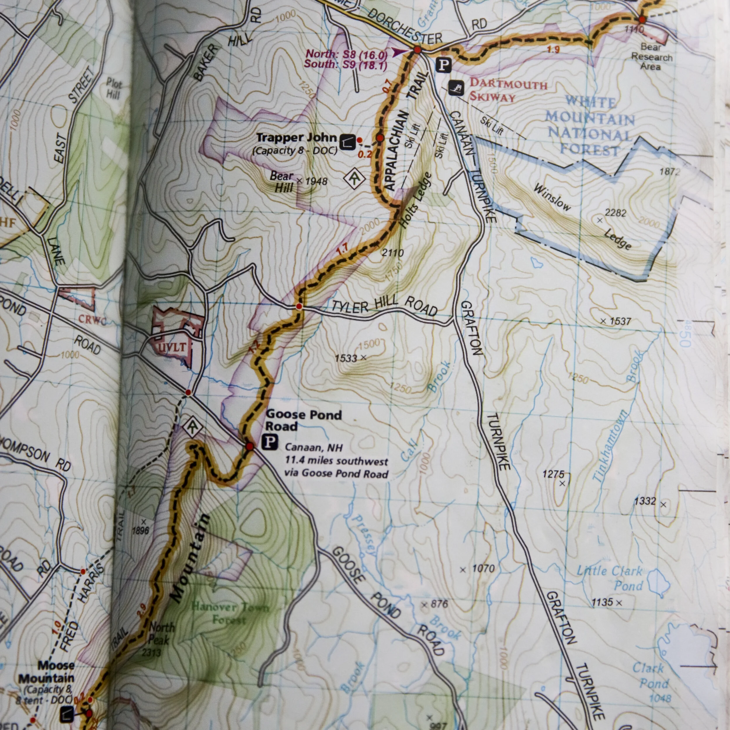 Starting in Norwich, VT on Day 1, we walked across the bridge into NH and camped at Velvet Rocks Shelter.